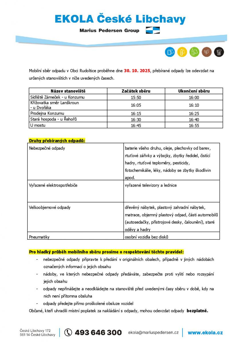 Svozový plán odpadu pro rok 2026