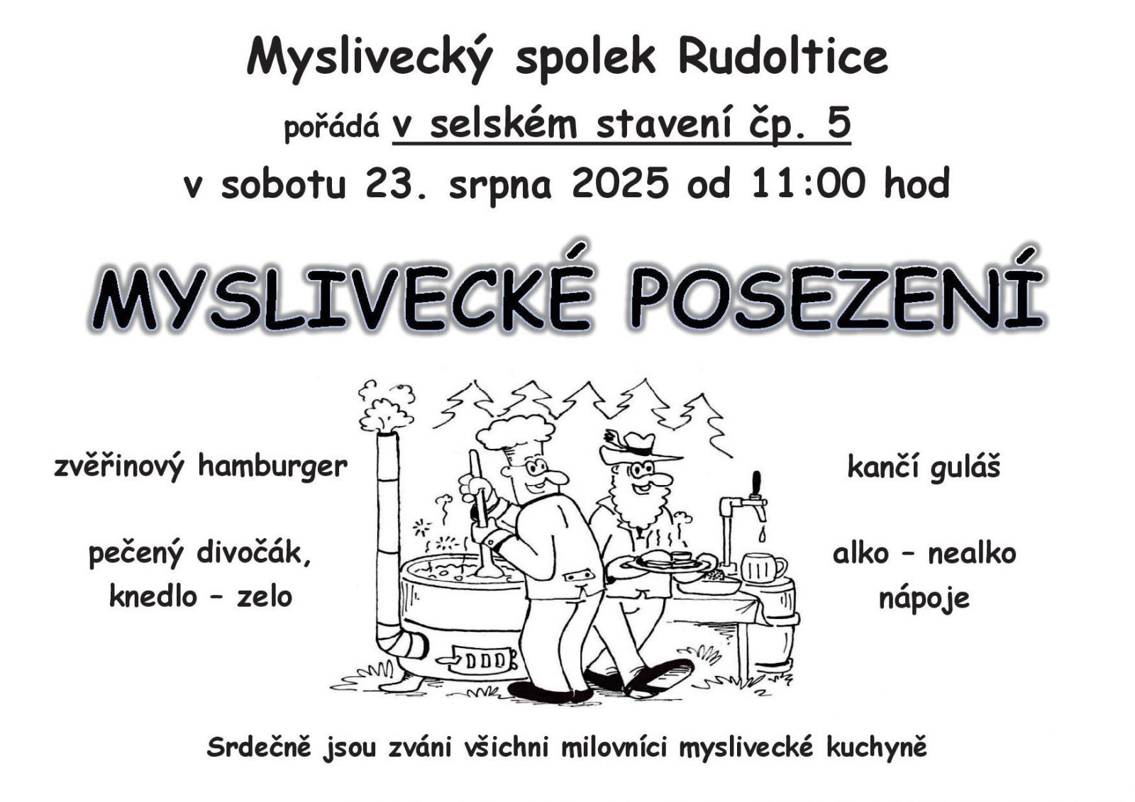 Myslivecké posezení v čp. 5 - sobota 23. 8. 2025