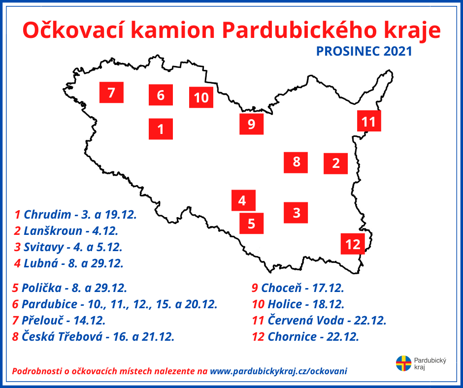 Očkování bez předchozí registrace bude umožněno občanům v Pardubickém kraji v očkovacím kamionu nebo na očkovacím místě mobilním očkovacím týmem, který putuje po celém kraji.